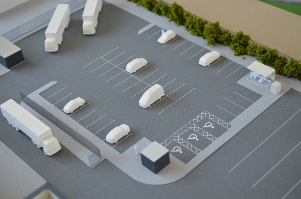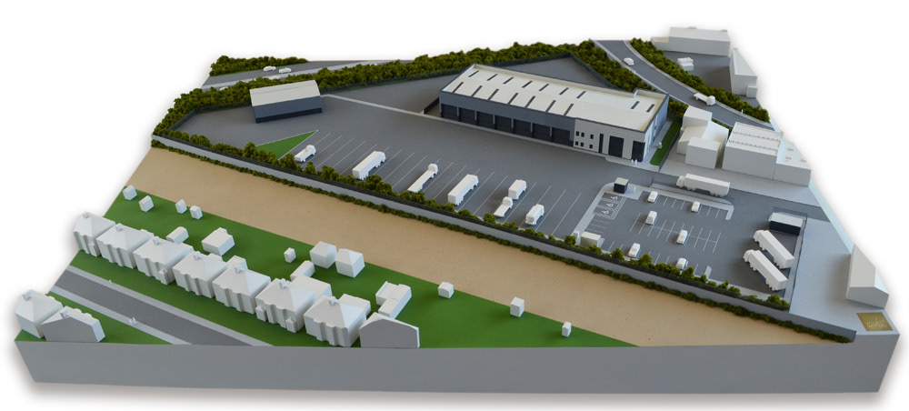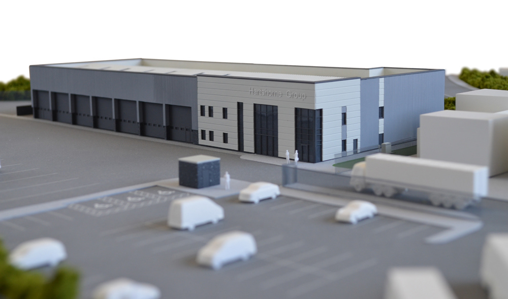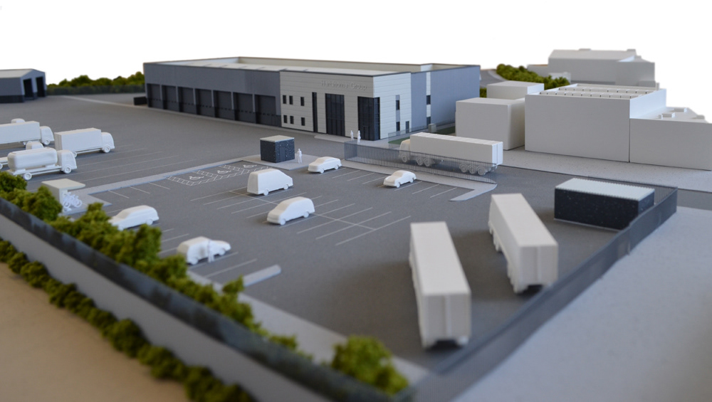 Produced to showcase a proposed new warehouse, bodyshop, office and HGV sales area within Hartshorne Group's existing site at Walsall. The architectural design is by Jefferson Sheard Architects.