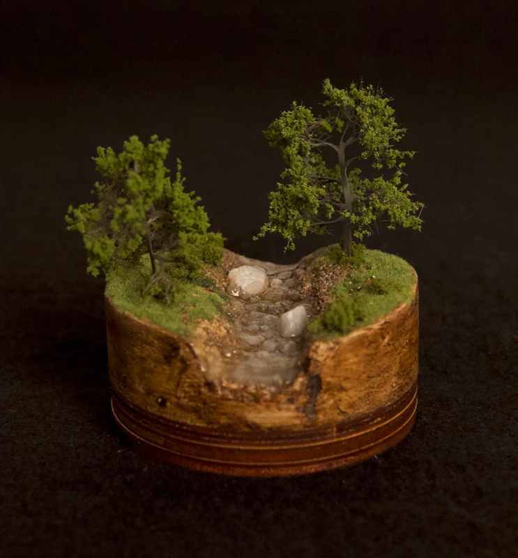 Created for artist Ruth Levene, a series of miniature scenes as part of her artwork 'Working Waters' at various scales. The models represent different elements and interactions within the Calder valley water systems and are designed to be moved around by visitors to encourage dialogue and understanding of the local ecology.
